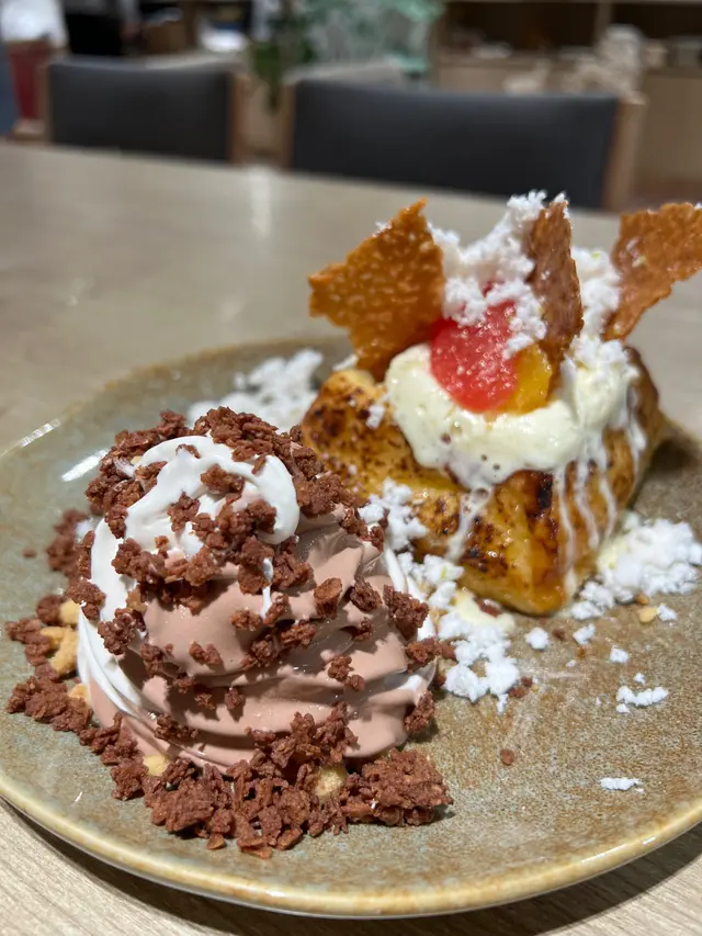 🔥超超推薦依款法式多士!食落口感軟綿綿好有蛋香~有疏乎厘feel甜度岩岩好🫶🏻外圍仲燒到焦脆金黃色~打卡💯配香滑雙色軟雪糕同脆餅碎好好味🤤