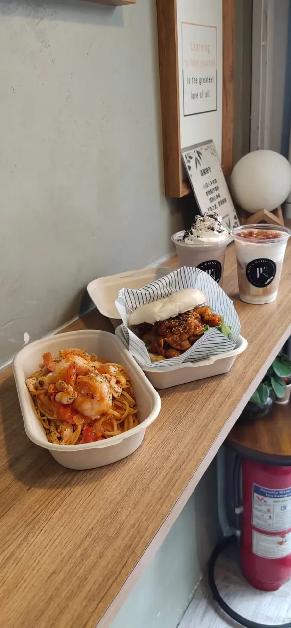 深水埗而家好多好嘢食 leunghoiching58Level 32021-09-2031 views Follow 個日落開深水埗見到佢平平無奇但又有幾個人買咖啡又好似幾香,就試D新食物買個外賣番屋企食。2個人食叫2個set,分別叫左一個蕃茄大蝦海鮮意粉同一個韓式辣醬泡菜豬肉原味bagel。個意粉味道吾錯蕃茄味岩岩好,隻蝦好驚喜煮得有彈性但吾會硬。個bagel正常吾會太辣,豬肉好軟嫩,少少辣恰當好處,泡菜同豬肉口感配合得幾好。另外兩杯飲品就叫左一杯泡沫咖啡Cappuccino,苦味偏多係好既咖啡,個人幾鐘意。仲有一杯就叫左曲奇忌廉沙冰,我平時好鐘意飲沙冰,但好多都好甜飲完就覺得真係好鬼甜,今次竟然吾會太甜又吾會無味,超級好味!總括黎講,呢間吾錯,特別係飲品好值特稱讚!The above review is the personal opinion of a user which does not represent OpenRice's point of view.LikeShare深水埗而家好多好嘢食 Will's Coffee https://s.openrice.com/QrKT0CfCzW0Report Post Ratings5Taste5Decor5Service5Hygiene5ValueDining MethodTakeAway