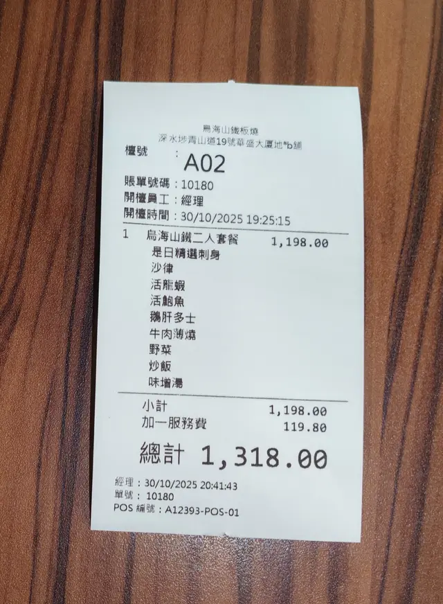 總結,餐廳的鐵板套餐不但食材新鮮、火候精準,師傅的手藝與親切互動更為整頓晚餐添上溫度,以每位約$600的價錢,絕對係高性價比之選。