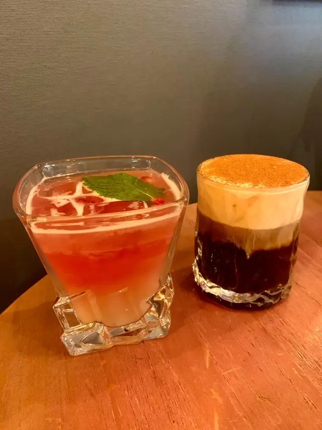 玉桂維也納凍飲超有驚喜!面頭鋪滿玉桂粉,中層係冰凍奶泡,底層係濃郁咖啡,飲落甜中帶香料香,層次爆燈!至於粉紅石榴冰茶就清新解渴,甜度啱啱好,夏天飲超爽!