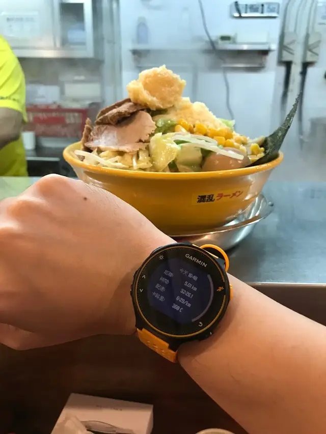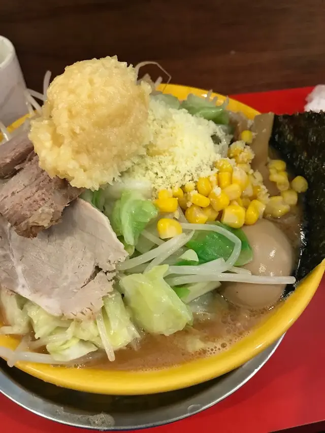背脂三倍,野菜三倍,生蒜兩倍的all in,我坐下之時,師傅還未準備好,同一時間只做三碗,炒菜是即炒,或許是人手不夠,這次等得比較久一點,幸好我不太趕時間。