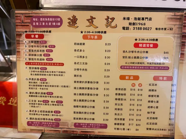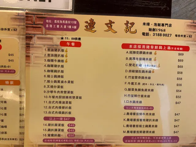 🥢其實連文記都係一間茶記 有常餐 早餐 下午餐 蔥油雞扒飯 等
