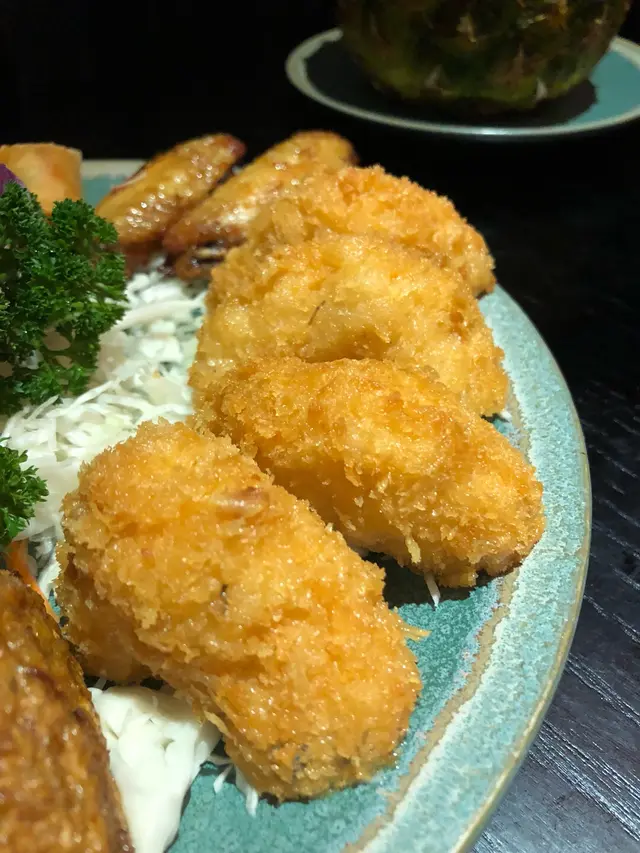 有圖大家可以睇到佢哋個小食拼盤每一件份量都好大,個蝦餅個大細足足有三份一隻手掌咁大,由表面嘅炸粉就睇得出蝦餅係新鮮即叫即炸先至會有呢一種脆面光鮮既脆片效果,每一件除咗份量大啖啖肉之外,未到上都偏向清新同爽口彈牙,炸既時間好好唔會有油億味,好多人都話泰式小食代表左個一間泰式餐廳嘅品質,咁呢一個小食拼盤就真係超班!