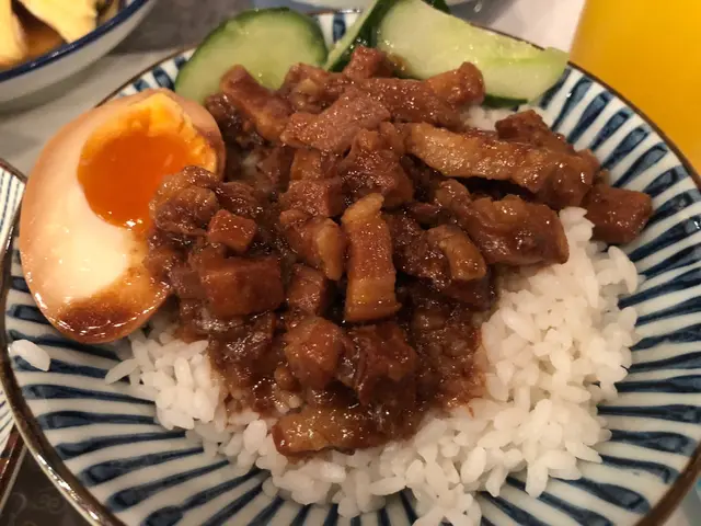 而今晚叫嘅係魯肉飯,係肥肉多過瘦肉,肉會切成肉丁。利用大火將油脂逼出,加入其他配料爆香,再加入醬汁熬煮近3個小時!!再熄火冷卻,利用冷縮現象將肥肉裡嘅油脂再逼出,等d醬汁滲透到肉嘅組織裡。所以每粒肉丁都好夠味,配以糖心蛋同白飯一齊食,唔錯!