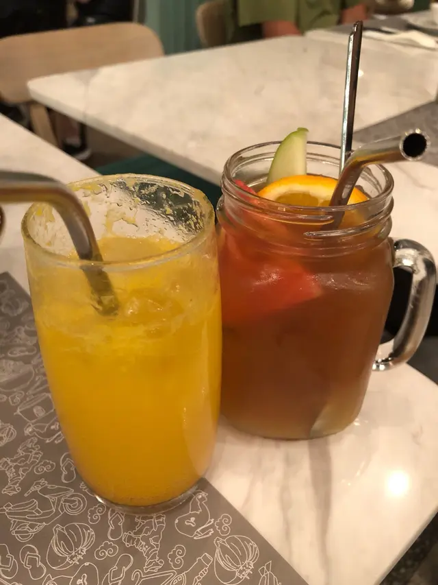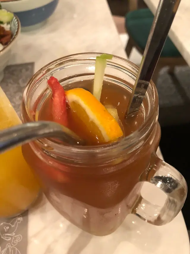 水果紅茶較甜,水果其實只有一片橙同士多啤梨一小粒。