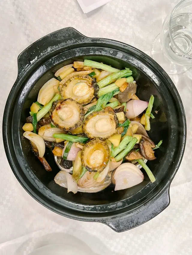 2) 葱燒活鮑魚