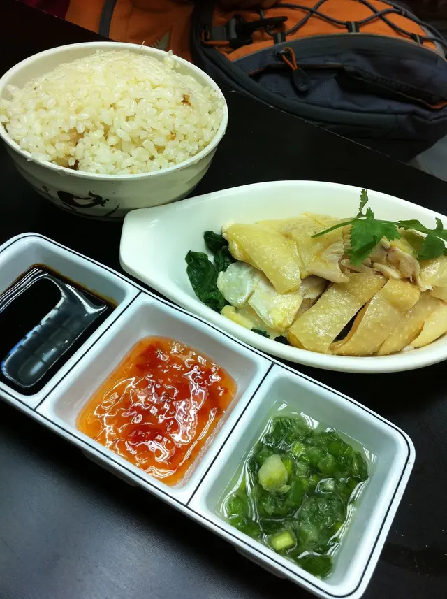 無骨海南雞飯: 雞肉滑嘟嘟, 配油飯好好味, 加埋三種醬汁, GOOD.