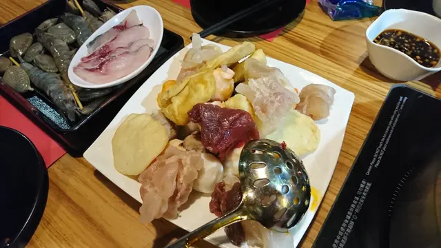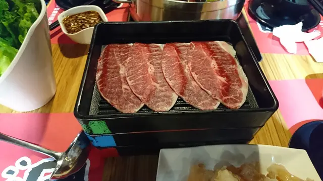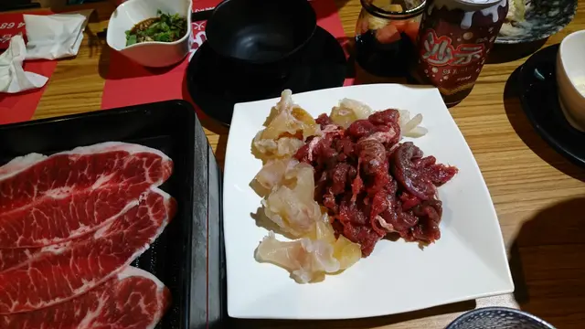 我們主力吃牛肉,三款牛肉包括了「美國PRIME頂級牛梅花」、「美國choice無骨小牛排」和「美國CAB安格斯黑牛」,我們當然都不斷落單,別無他法了吧,一小盤只有五片牛肉左右,四個大人一下子便可吃掉數盤。三款牛肉都不錯,當中「美國PRIME頂級牛梅花」牛味較濃而嫩,肉「淋」,其他兩款我吃不出分別,但論牛味濃,個人更喜歡「鮮牛肉」,將一塊鮮牛肉片放到麻辣湯灼個五成熟,入口牛肉鮮嫩而淋,牛味在麻辣湯伴隨下仍很濃,不錯吃,另一味很好吃的是牛筋,亦是到櫃檯自取,在麻辣湯煲過良久後,入口軟淋淋的,雖然很辣,但軟淋淋的質感就是我非常喜愛,教我一吃再吃。