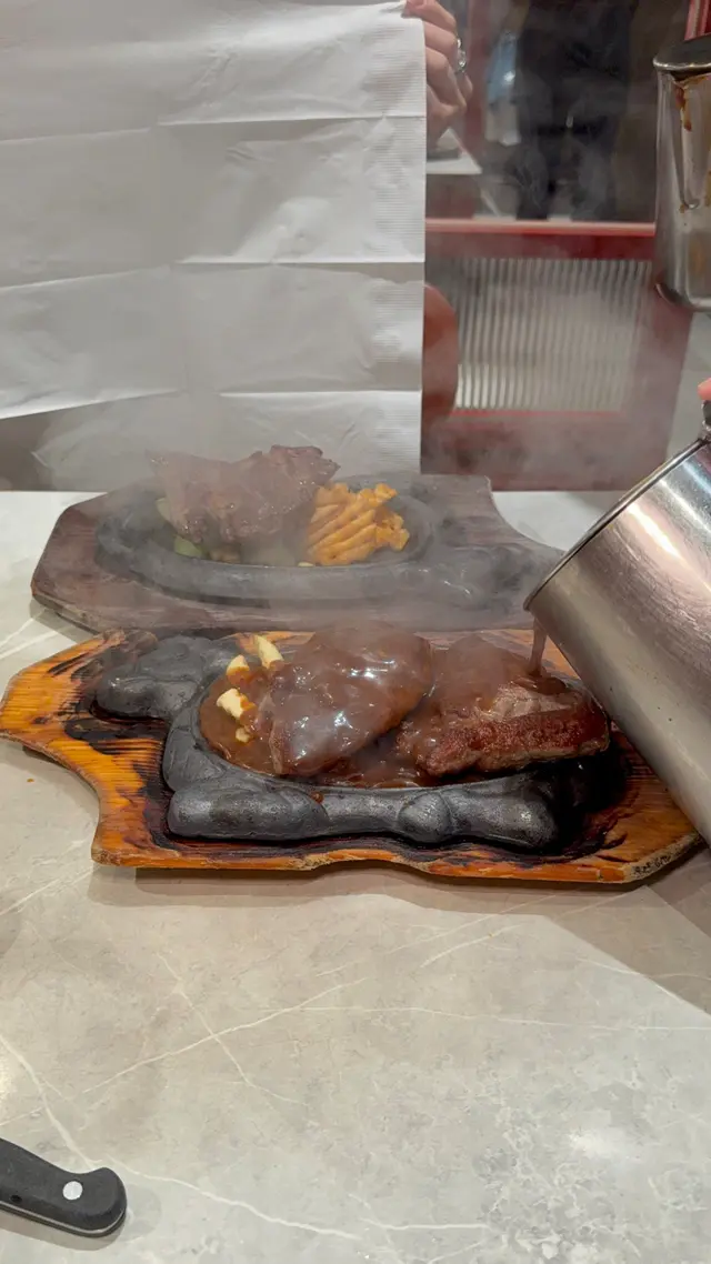 牛柳煎至五成熟,肉質厚切而且帶少少粉嫩色,入口軟腍肉味濃郁,加上波浪紋薯條墊底,粗身薯條口感更滿足,搭配熱辣辣鐵板,再淋上香濃微辣黑椒汁,味道惹味!