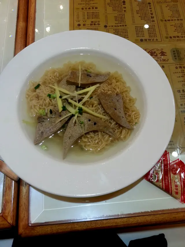 ,特地加$5轉福字麵底,有福麵既茶記應該絕無僅有。大片豬潤厚切充滿口感,加上薑絲辟去腥味,是一種吃得到的心思。褔麵超市雖然有得買,但加上薑葱調味,就成了豪華版即食麵。