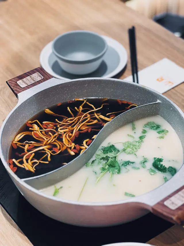 - 上品蟲草木耳鍋:養生路線,湯底清甜帶天然海味,加入瑤柱、杞子同蟲草感覺好補,尤其煮海鮮好襯,會帶出鮮味