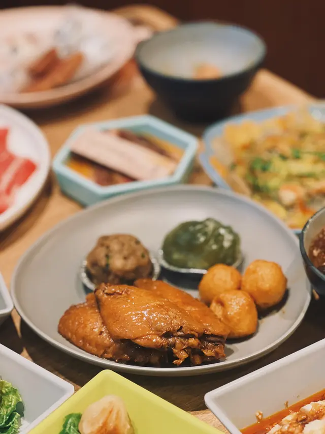 - 芫荽皮蛋豬肉鍋:用豬骨熬底、加入皮蛋同芫荽,香氣係偏清新帶微微鹹香,煮蔬菜同薄肉最岩,開胃但吾會蓋過食材原味