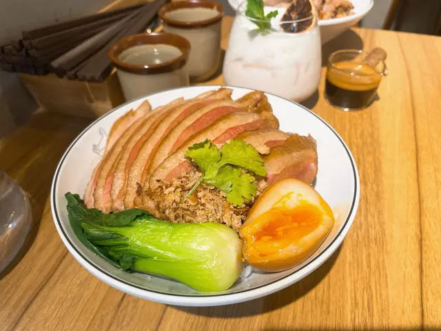 接下來我點咗份慢煮鴨片飯😋,鴨肉煮得夠Q夠滑,配上煙燻嘅風味,每一口都俾人一種識飲食嘅幸福感。