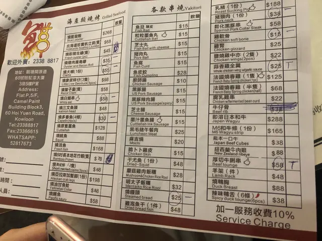 點餐紙有不少選擇,例如海鮮、串燒、蔬菜等。