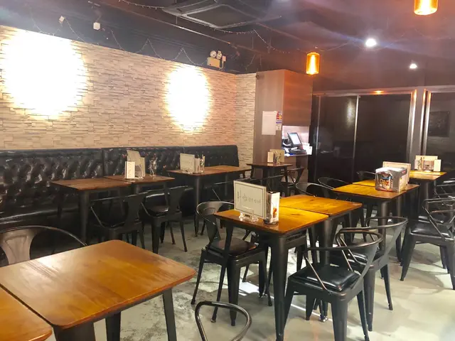 這家餐廳裝潢簡樸實在,播放著粵語流行曲。灰白色的磚頭牆,靠牆一排是沙發座,座位很多,適合聚餐。