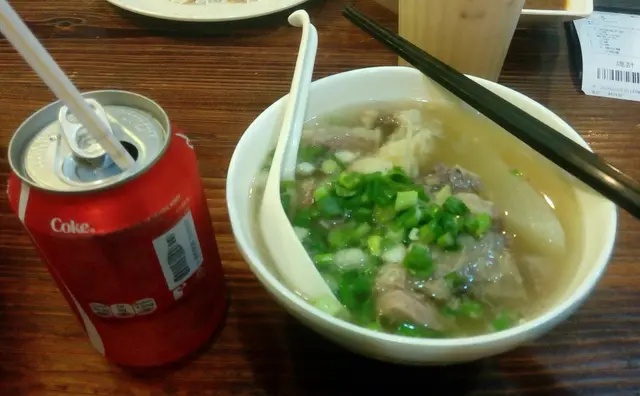 阿姐問要瘦肉還是半肥瘦, 這樣也有得揀, 似乎做得很專業, 要吃就當然揀半肥瘦。再者, 招牌牛腩麵加一罐汽水盛惠52大元, 不便宜。對這碗麵就更有期望, 可惜希望越大, 失望也越大。