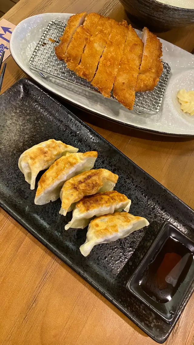 2人食叫咗「黑松露薯蓉湯烏冬配吉列豬扒」、「燒咖喱牛肉飯(激辛)」、煎餃子🥟