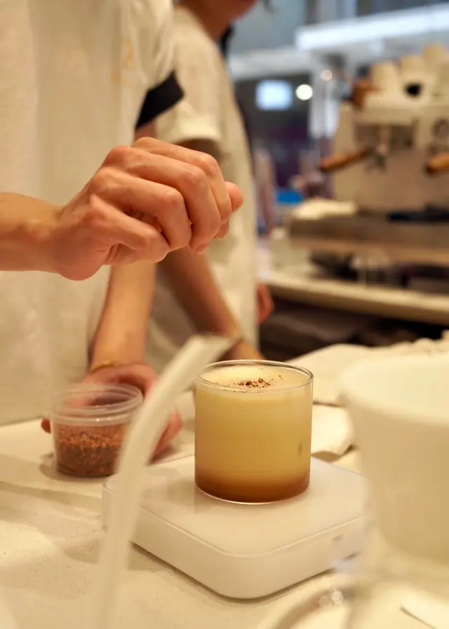 茉莉冷萃茶为基底的特调,调性清爽又丰富,柚子蜜糖带来一丝甜感,花香和柠檬的酸度被搅打出来的泡沫托起,轻轻飘进鼻腔,不是咖啡但挺好喝的。
