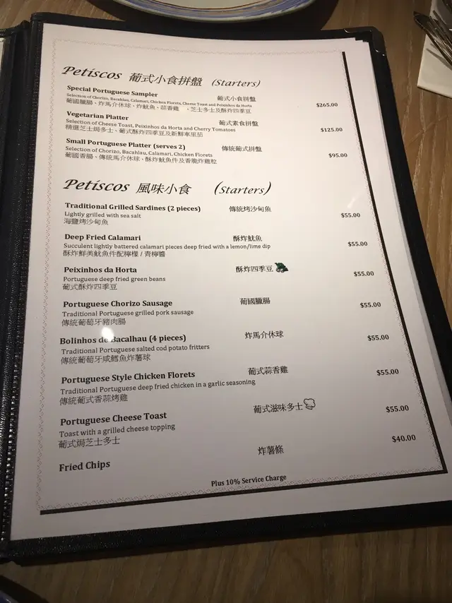 先來個小食,由葡國香腸、傳統馬介休球、酥炸魷魚球及香脆炸雞粒所組成,葡國香腸偏鹹,可以麵包夾起來吃,中和了鹹味,又幾好吃;而酥炸魷魚是當中我的至愛,炸得來不會好油膩,魷魚彈牙,夠曬咬口!