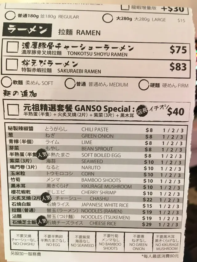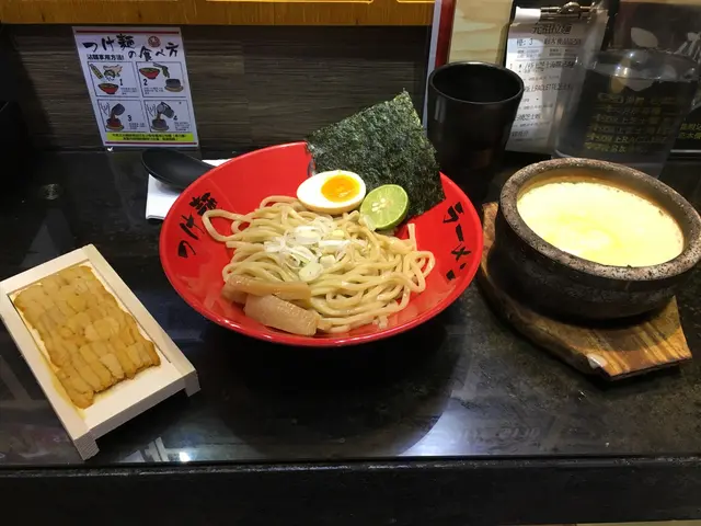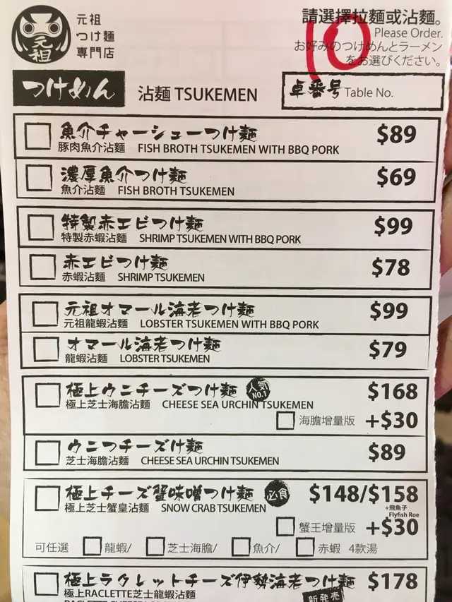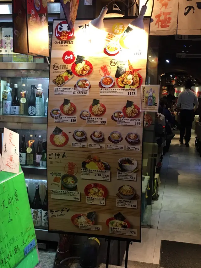 門口嘅menu 都包含曬沾麵嘅選擇,而座位唔多又成日坐滿,要預返半個鐘至四十五分鐘排隊。