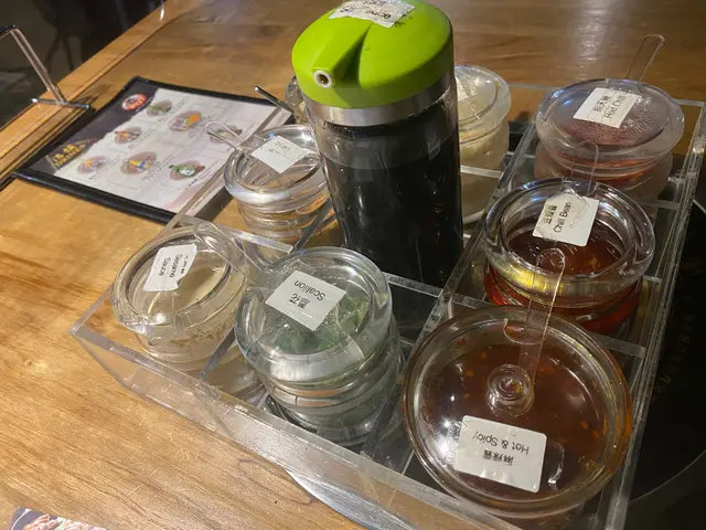 上雞煲之前,店員有個九式調味架俾我地自己調醬,溝個自己鐘意嘅調味料。