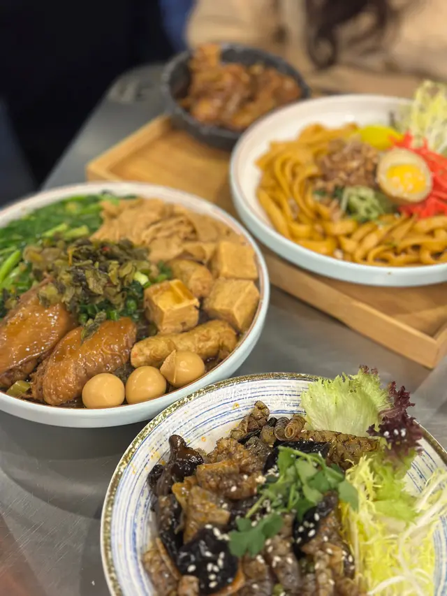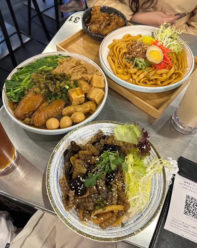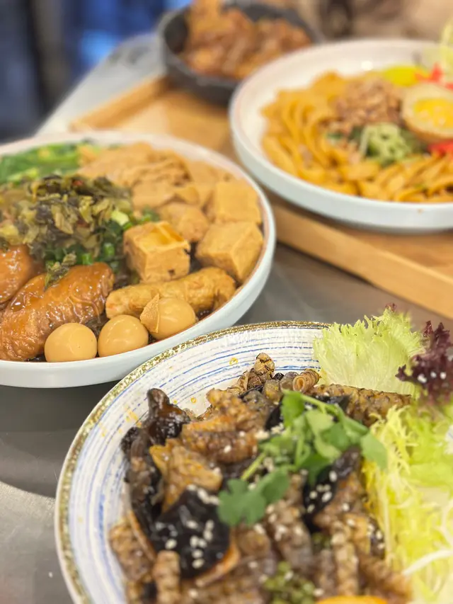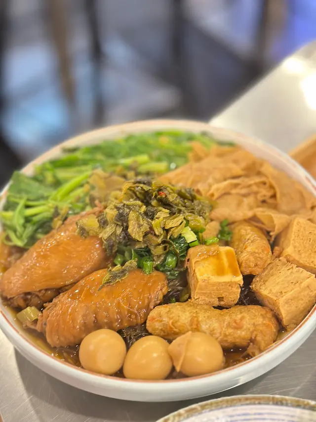 好豐富嘅滷味拼盤,分別有雞翼、黑輪條、凍豆腐、鵪鶉蛋、大豆皮、通心菜,再配自選麵。今次揀咗冬粉,吸晒啲滷水汁,非常入味。