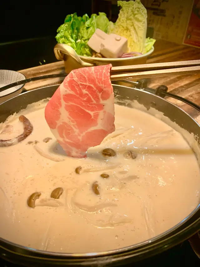 厚切、大塊,而脂肪分佈亦相當平均,肉質香濃鮮嫩,配上濃厚豆乳湯底,滋味無窮,滿分!💯
