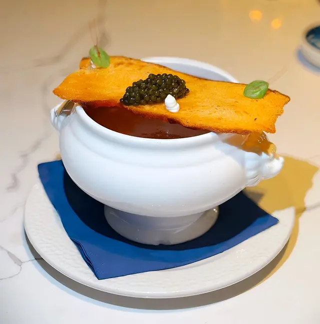 脆身的sourdough crouton配上鹹香嘅魚子醬一起吃非常匹配,而龍蝦湯本身濃而不過鹹,鮮味十足,濃稠度又剛剛好,難怪我也喝過不停!