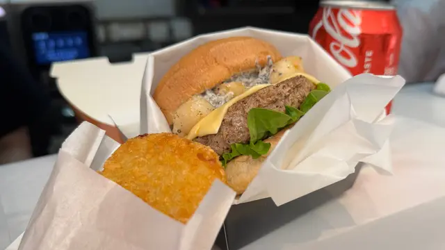平時黑松露帶子意大利粉就見得多 意大利粉轉換成漢堡包我都係第一次見 黑松露醬落得好重手 每一啖都食到醬加包同配料 唔會係乾啃 入面有三粒帶子 熟度啱啱好 塊牛肉好juicy好重牛味 果然一分錢一分貨 真心幾足料👍🏻