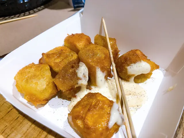 炸燒賣個口感真係好特別好過癮,外面脆卜卜,內裡仲好軟糯,加埋沙律醬真係十個