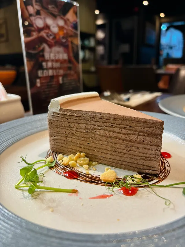 甜品部份既朱古力千層蛋糕真係吸引得來,層層疊疊既蛋糕夾埋濃厚朱古力醬,每一口都有唔同既口感層次。蛋糕質地輕盈又唔失綿密,朱古力既苦甜完美結合,令整體食感好有層次感。呢份甜品除咗外觀精緻,味道就更加豐富,真係滿足每個鐘意朱古力既味蕾🍫🎂。