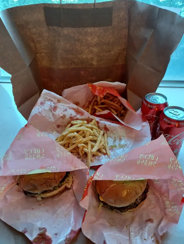 漢堡·滿足 ceciyuLevel 32021-04-2045 views Follow 今日同朋友去酒店玩,朋友提意買外賣上酒店食,經過享和街,被大大個紅色招牌吸引。原來店舖主打漢堡,餐牌選擇不多,只限外賣。我們點了雙層芝士牛肉漢堡及牛肉漢堡餐,跟餐有薯條汽水。店舖採用開放式廚房,乾淨衞生。漢堡即叫即整,看見店員仔細地烘培,漢堡包皮烘過,香香脆脆,手打牛肉即煎,雙層漢堡夾上兩塊厚厚的牛肉,再夾上芝士、蕃茄再加上醬汁,新鮮熱辣的漢堡就出爐了。一口咬落去先嘗到濃郁的肉汁,肉質不鬆散,牛肉味香濃,配上新鮮蕃茄,整個很 juicy,不會膩,很滿足。薯條即炸,香脆可口,份量不少。雙層芝士牛肉漢堡牛肉漢堡買漢堡加$10就有埋熱狗。The above review is the personal opinion of a user which does not represent OpenRice's point of view.LikeShare漢堡·滿足 Lucky Smash https://s.openrice.com/QrKT06FOy00Report Post Ratings5Taste4Decor4Service4Hygiene4ValueDining MethodTakeAway