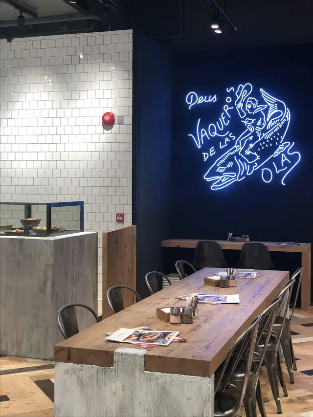 Deus Ex Machina 是個來自澳洲的電單車和滑浪用品品牌,在 The One 商場的店內開設了Deus Café,小小的店,設計休閒舒適,供應一系列澳洲輕食和手沖有機咖啡。