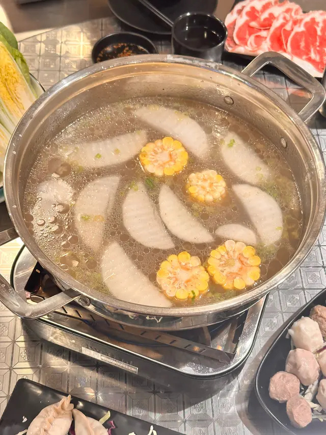 招牌的**牛骨湯底**作為火鍋基底,湯底濃郁鮮香,帶有淡淡的牛骨香氣,