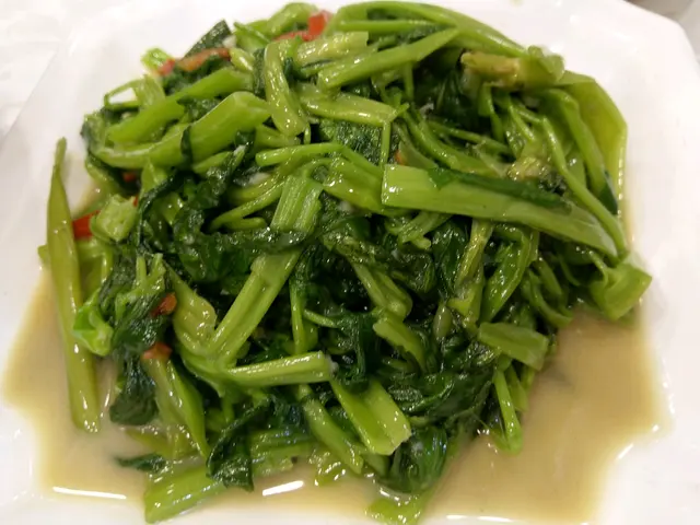 椒絲腐乳炒通菜$58,椒絲和腐乳惹味,用上猛火炒熱辣辣上枱,吃不停口。