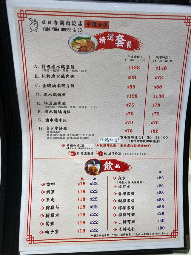 我哋叫咗午市套餐嘅金牌滷水鵝片飯&滷水雙拼飯(豬耳/豬大腸),附送咖啡或茶,仲可以加錢轉例湯。