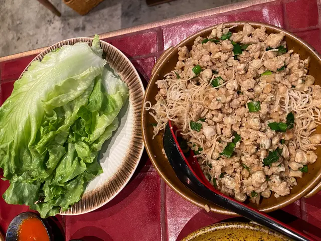 同平時嘅泰式生菜包唔同 肉碎入邊仲有一粒粒細粒嘅蜆肉 最驚喜嘅係肉碎底下仲有炸粉絲墊底