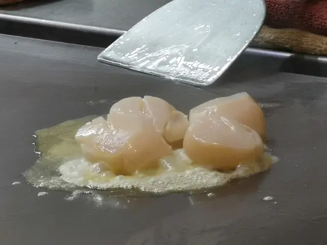 當師傅將啲帶子放落鐵板燒,滋滋聲好吸引,加上少少油,煎到金黃色好靚,帶子表面仲有pan-seared嘅痕跡