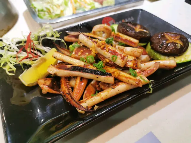 之後仲睇到師傅表演燒魷魚,佢先將魷魚鬚煎香,然後再仔細將魷魚剖開切絲