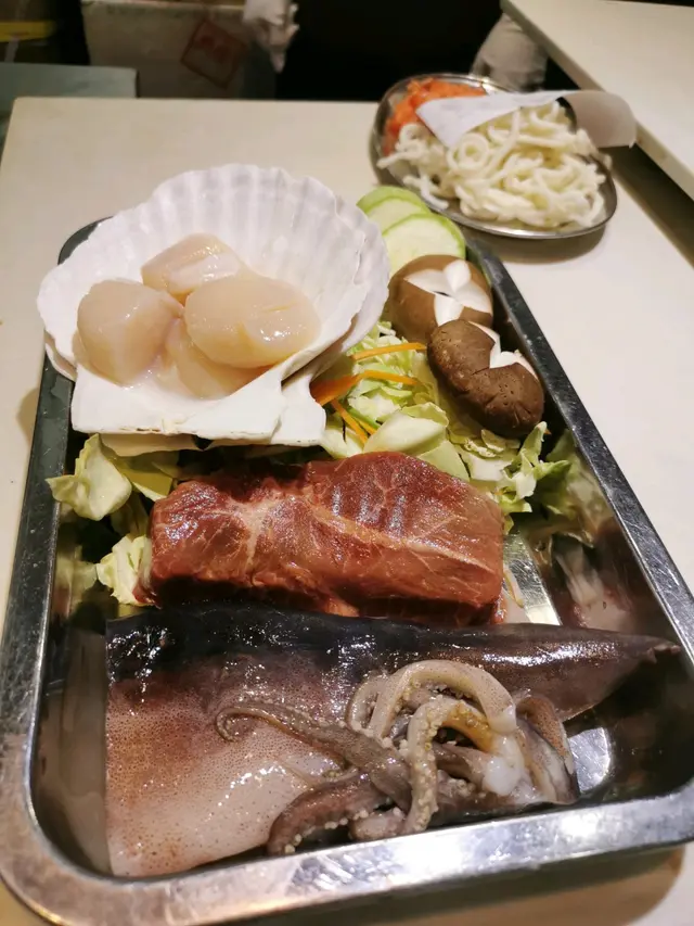 然後就有個海鮮拼盤,有大大粒帶子,同埋原隻魷魚,就咁望已經覺得好豐富