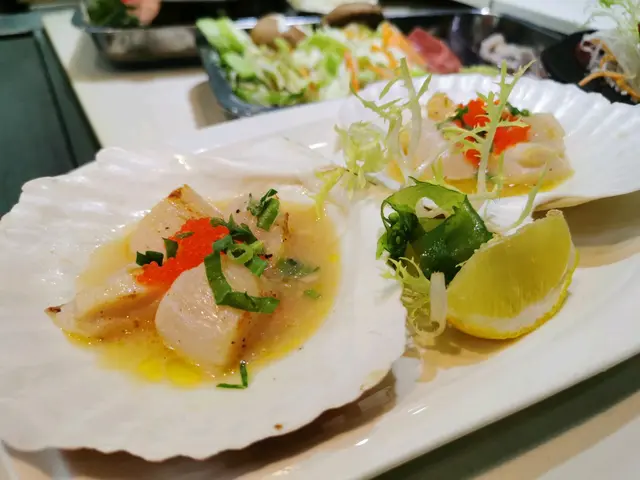 第一樣上嘅菜係北寄貝刺身,刺身新鮮,食落爽口彈牙