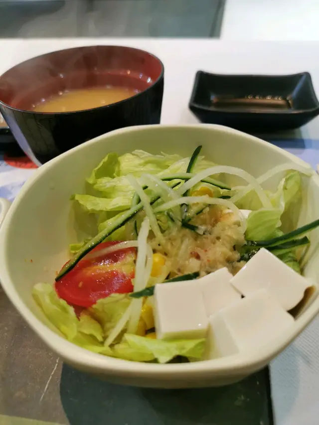 先嚟嘅係豆腐沙律同麵豉湯,沙律酸酸甜甜