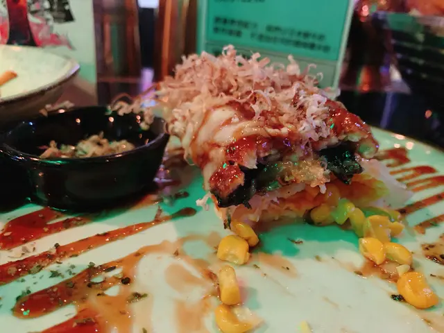 日式鰻魚起司粟米蛋餅一上枱香氣撲鼻,蛋餅略厚,蛋餅入邊有好多芝士同粟米,口感豐富。一整條鰻魚上邊有芝士同木魚,鰻魚香甜,有少少韌。
