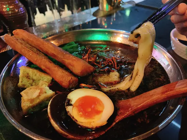 我哋冇叫到傳統嘅牛肉麵,膽粗粗叫咗一個黑蒜香油牛肉麵,結果冇令我地失望。台灣刀削麵好粗條,口感十分煙韌,好好咬口。糖心蛋蛋黃漏心,好好吃。湯底充滿黑蒜油嘅香味,值得一讚嘅係有大量炸過嘅蟲草花,出奇地同呢碗麵好配合。豆腐卜同油炸鬼炸得有啲過火,唔係好索到汁
