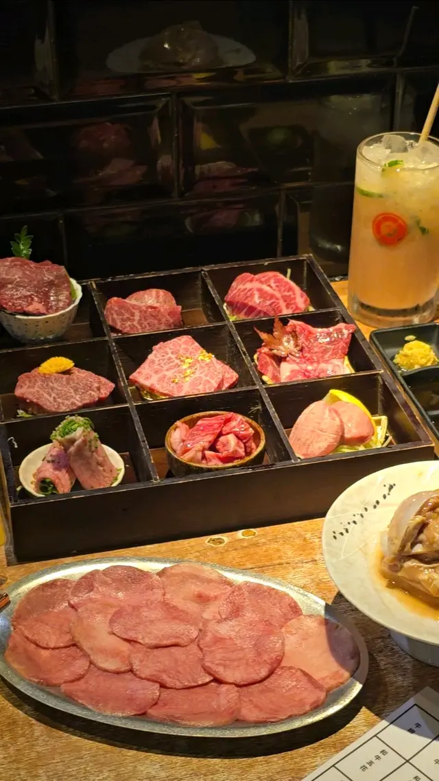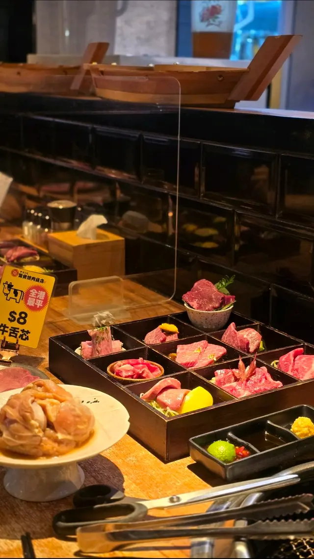 😋😋 極 • 九宮格,肉全部都係肉。牛柳、極黑和牛、澳洲腹脅、和牛五花、和牛三角腩、手切牛頭脊、和牛博多葱卷、日本漬牛肋、厚切牛舌芯。和牛五花同 & 牛三角腩,油花十足。厚切牛舌芯,厚實爽口。和牛博多葱卷有特色,食完咁多肉肉,突然嘅新鮮感。如果唔想全部牛肉,可以食$398個個拼盤