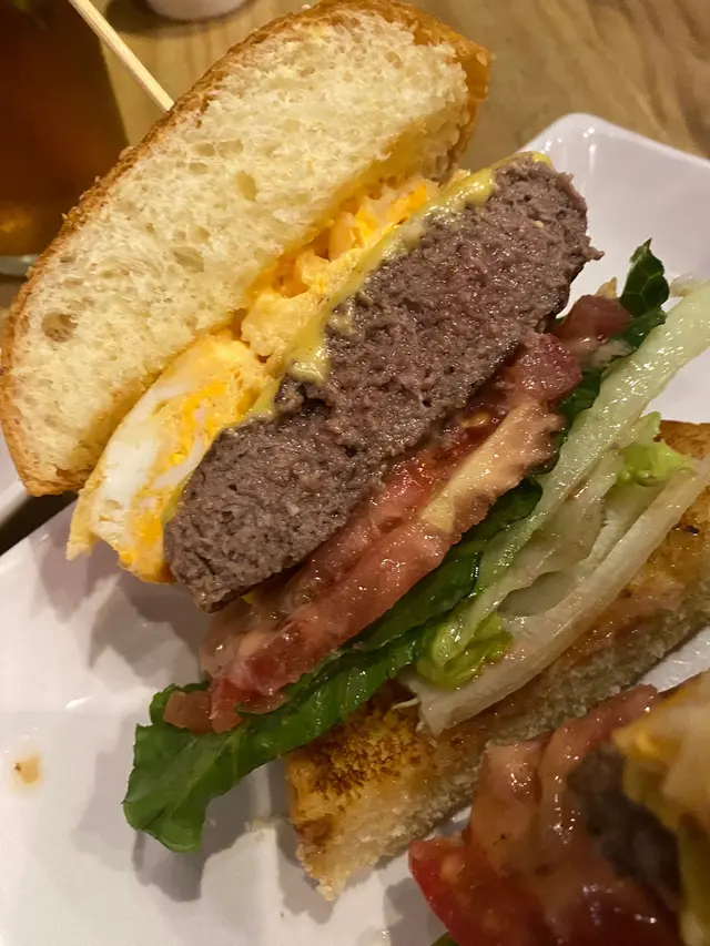 份量都係不相伯仲,爆漿半熟蛋與熔岩起司完美交融,厚實牛肉排鮮嫩多汁。蛋液裹著焦香肉排,口感濃滑邪惡,每口都係感到滿足。