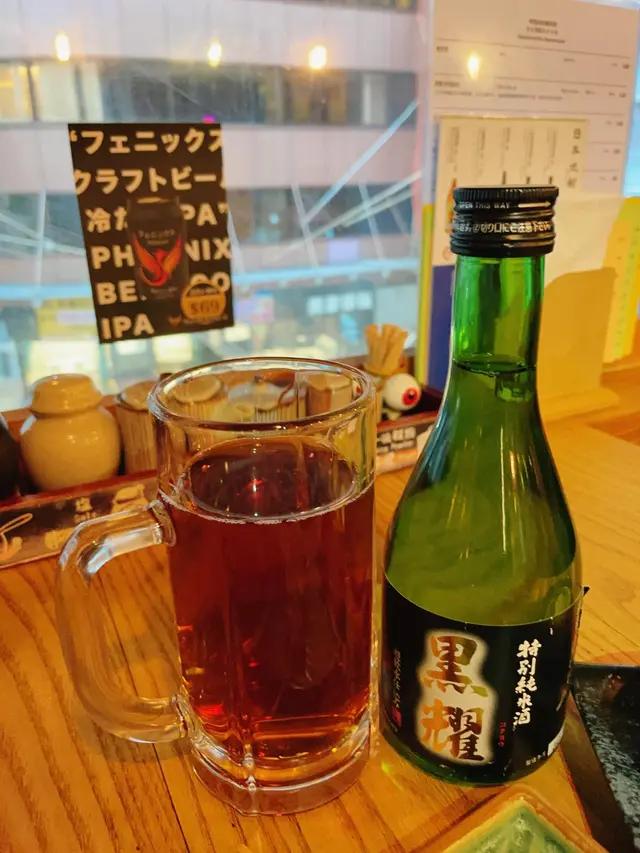 每個炸物之間,都會配上一杯「清酒」。一杯下肚,正阿!
