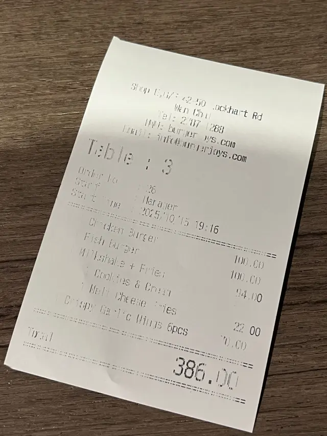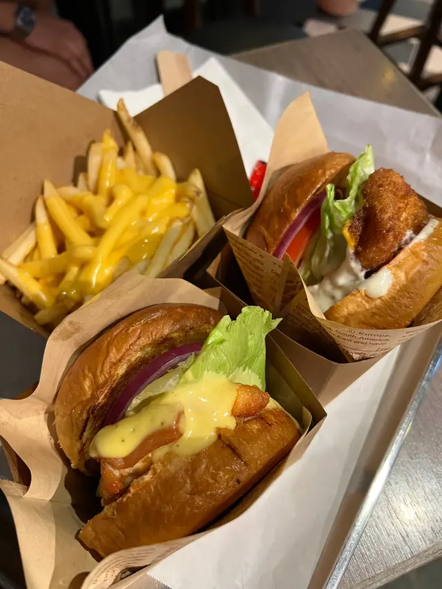 😋灣仔誠意漢堡酒吧小店😋 zcbdkdjLevel 42025-10-1519 views Follow 有次經過試過Burger Joys幾驚喜,估唔到酒吧feel但漢堡幾出色,今晚又經過,一於encore今次食魚柳漢堡同雞肉漢堡,魚柳口感實淨一絲絲,雞皮脆皮厚實,加埋滿滿嘅醬汁、洋蔥、蕃茄同生菜,烘過嘅包,味道豐富,好有層次熱溶芝士薯條,心機誠意之作,每一層都有邪惡嘅芝士,條條都帶濃濃嘅芝士香,蒜香雞翼生炸火候控制得好好,皮脆肉嫩,加埋泰式雞醬同炸蒜,調味一流,非常惹味Cookies & Cream奶昔,濃厚oreo香味,口感順滑,仲有oreo碎,夠晒滿足環境乾淨,感覺幾chill,最重要係食物質素高,好滿足The above review is the personal opinion of a user which does not represent OpenRice's point of view.LikeShare😋灣仔誠意漢堡酒吧小店😋 Burger Joys (君悅居) https://s.openrice.com/QrKT0VTHU00Report Post Ratings5Taste4Decor4Service4Hygiene4ValueDining MethodDine In