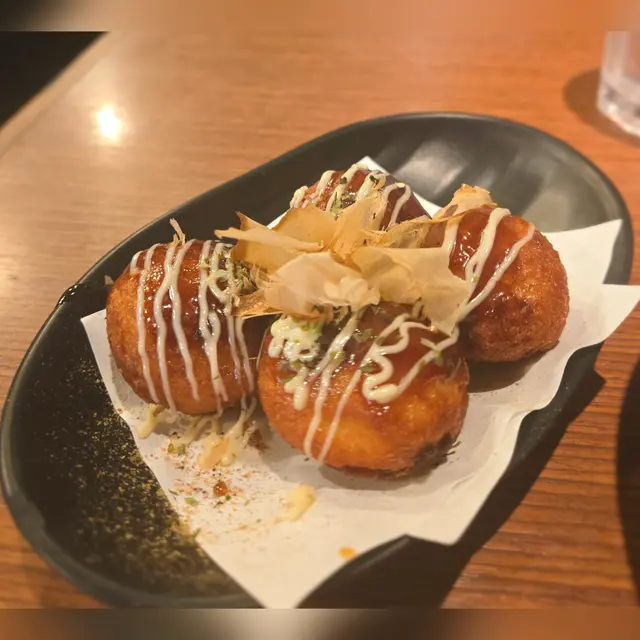 外皮烤的焦脆,淋上濃郁的章魚燒醬、柴魚片,滿滿日本風情。