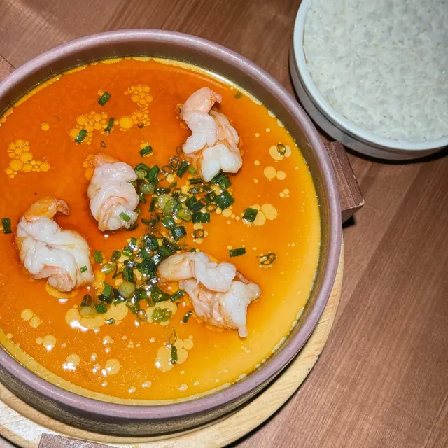 蒸蛋口感滑溜,上面鋪了爽甜的大蝦🦐,拿來送飯一流。